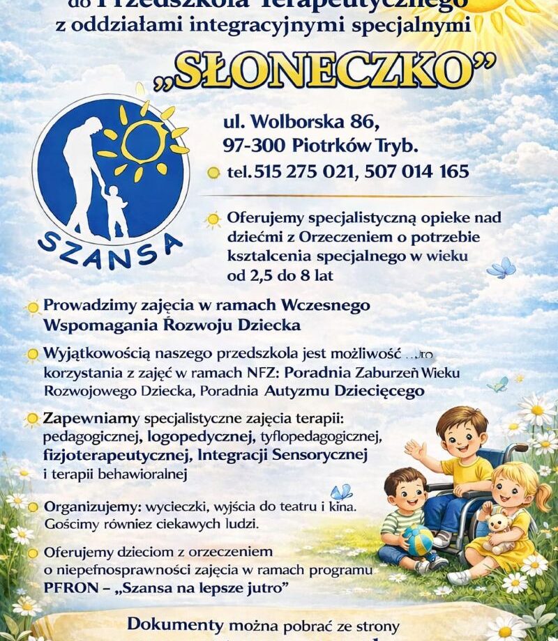 Przedszkole Terapeutyczne"Słoneczko" specjalizuje się w terapii dzieci z autyzmem oraz innymi niepełnosprawnościami